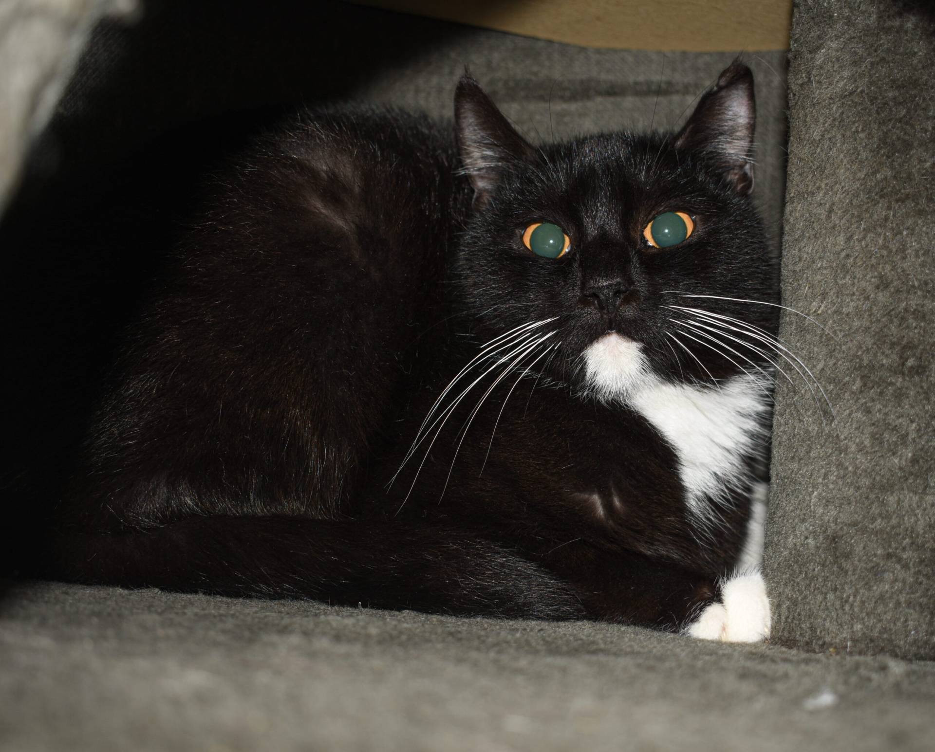 Mit seinem Artgenossen Spooky arrangiert er sich gut, kommt aber ebenso als Einzelkater zurecht.