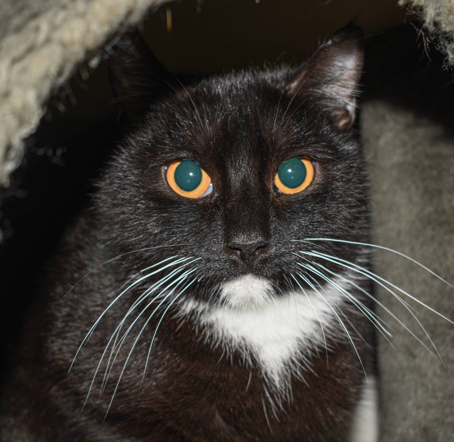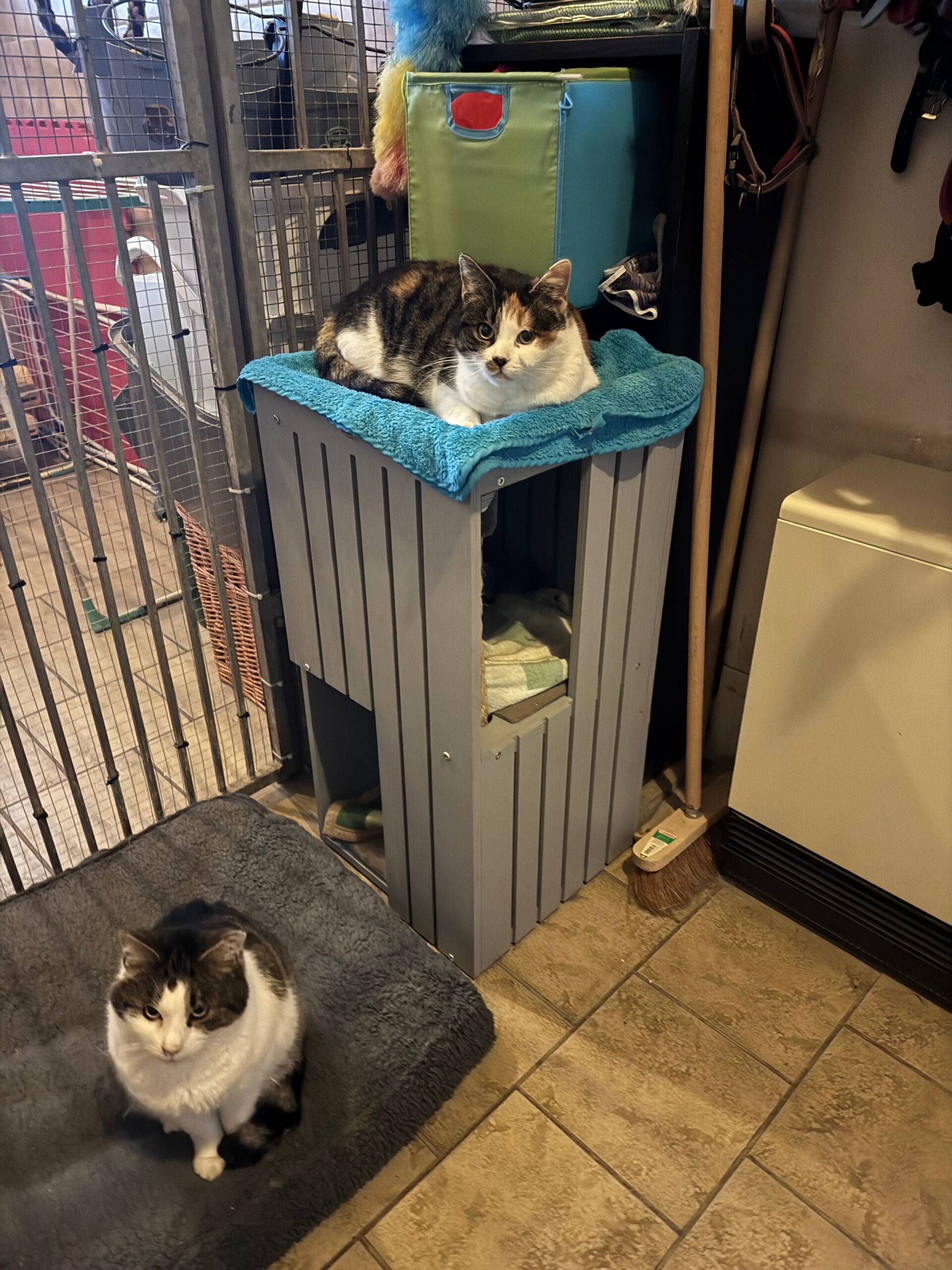 Kessy und Kobold kamen 2025 als Einzugstiere über das Veterinäramt zu uns ins Tierheim. Anfangs waren beide sehr menschenscheu, ließen keine Berührungen zu und hielten sich die meiste Zeit in ihren Verstecken auf.